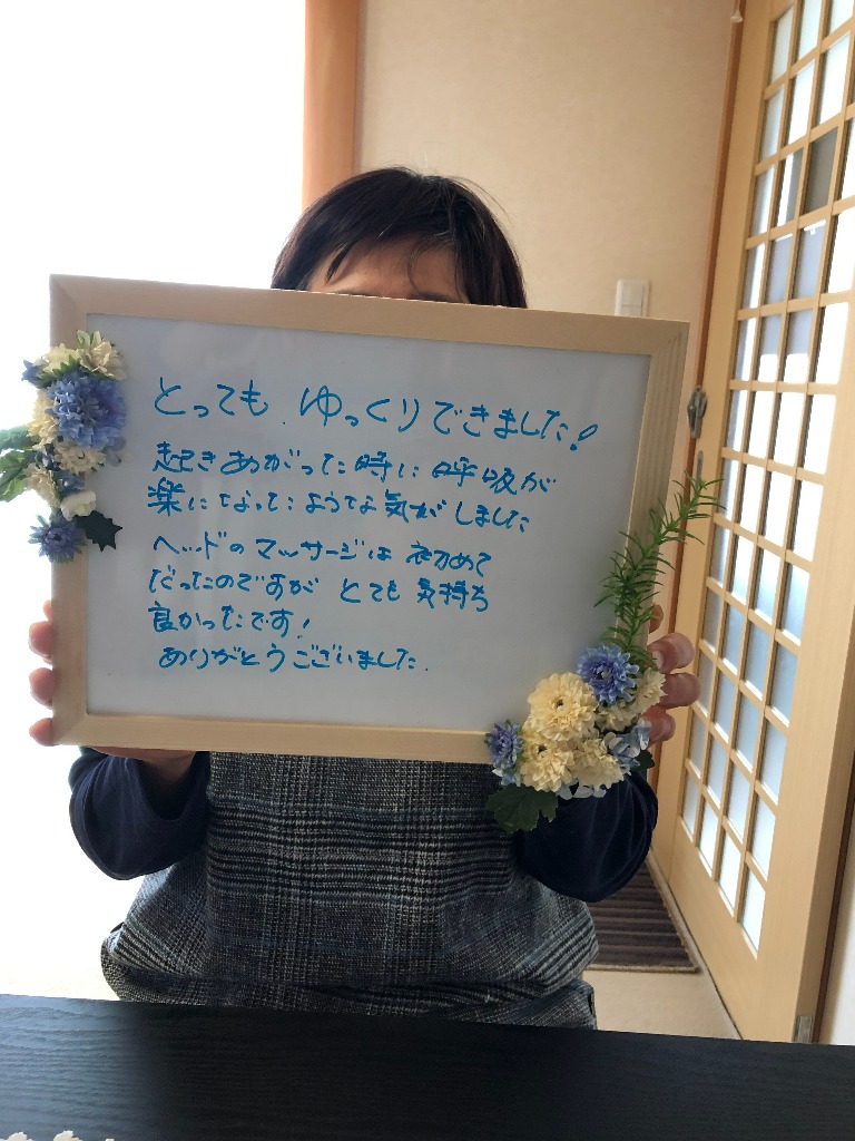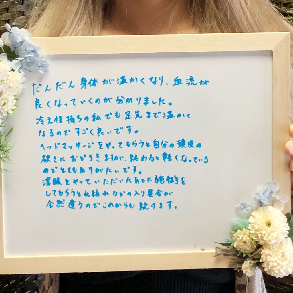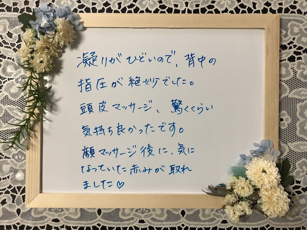 本日はありがとうございました♡頭もすっきりとして今夜はぐっすりと眠れそうです( ^^) またよろしくおねがいします‼